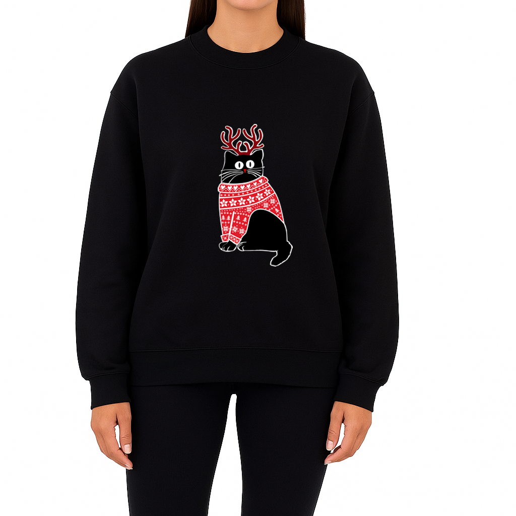 Merry Christmas Holiday cat print crew neck unisex Sweatshirt top Christmas Jumper Pussy Cat Xmas top